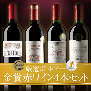 こんちには!キュベクルールの片岡です。 久々の更新失礼いたします。 すっかり涼しくなってまいりました。 ボルドーではメドックマラソン2016も終わり、ワインの仕込みが最盛期を迎えていることでしょう。 さて、今回は「金賞赤ワイン4本セット」のご紹介です。 いや正直、僕自身がこの「金賞」の謳い文句で残念
