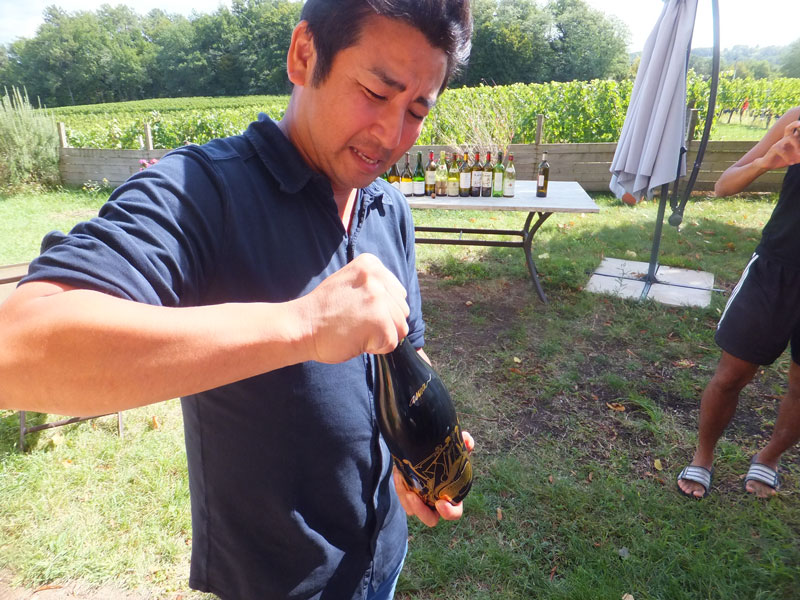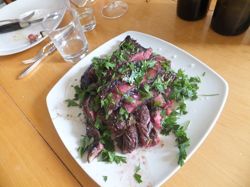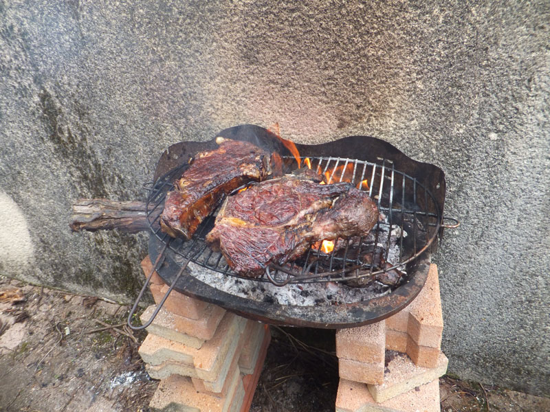料理のメインは麗雄さんの畑のブドウの木を使った熟成肉の炭火焼。